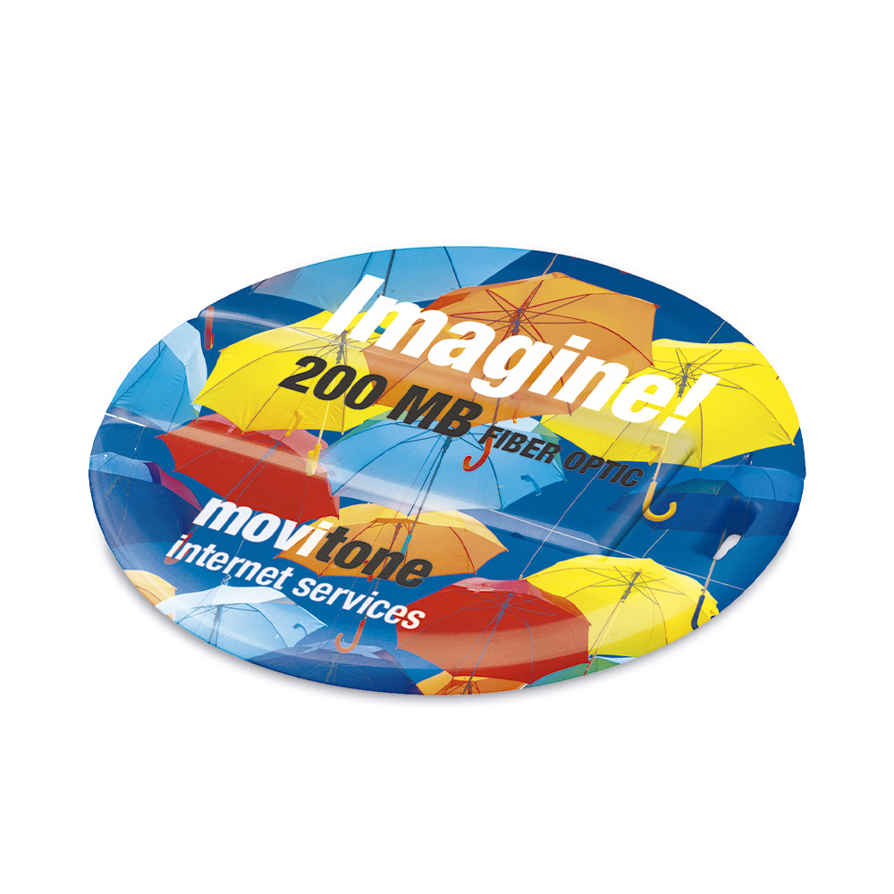 Pen personalizada circular em plástico, leve e versátil. Brinde perfeito para personalizações de imagens e logotipos de várias cores com gradientes.