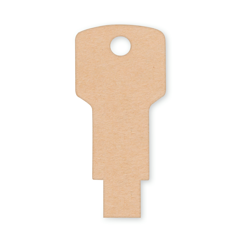 Pen USB de papel reciclado em forma de chave.
