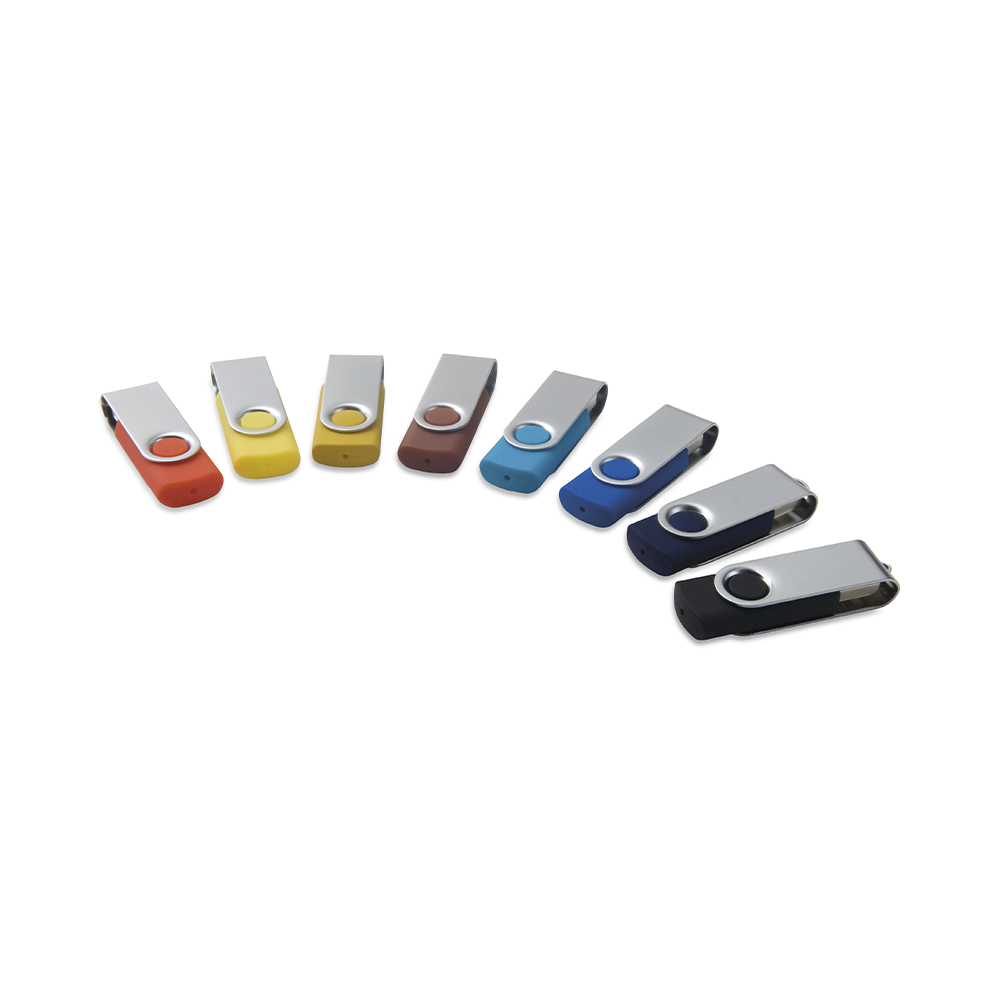 Esta pen permite a personalização do nome, marca ou logótipo a cores ou a laser. Tem corpo em borracha e clipe metálico giratório. Pode escolher incluir uma embalagem ou um acessório como um strap ou fita lanyard.